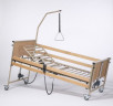 Спинки и ограждения медицинской кровати изготовлены из экологически чистого бука, четырех секционное основание из высокопрочного металла, а эстетичный вид изделия не нарушит интерьера квартиры, что позволяет использовать кровать с электроприводом в домашних условиях. В комплектацию кровати входит медицинский гигиенический матрас в моющемся чехле. Боковые ограждения регулируются по высоте и опускаются ниже уровня основания, что облегчает комфортное сидение пациента на кровати. Колеса, установленные на кровать, оснащены тормозами с индивидуальной блокировкой.  В многофункциональной кровати предусмотрено положение тренделинбург/ антитренделинбург, то есть регулировка ложа по углу наклона.